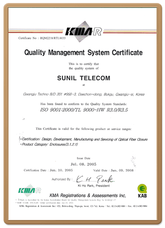SUNIL Telecom의 인증현황을 보실 수 있습니다.